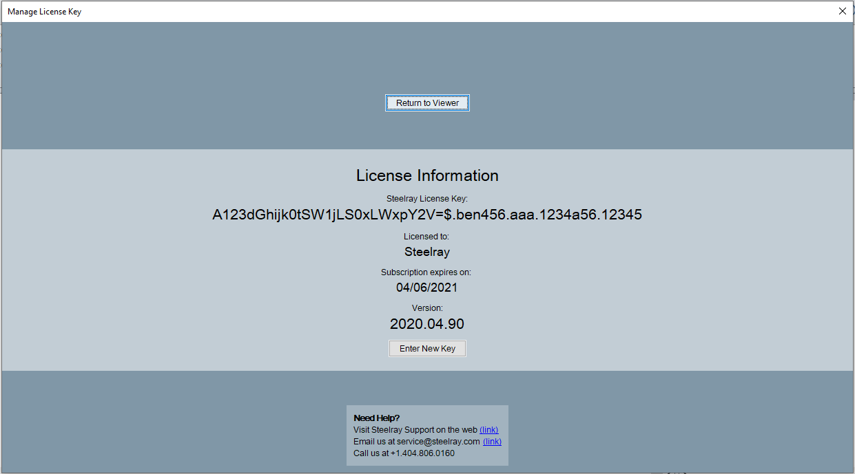 When you downloaded Steelray Project Viewer (SPV), you probably received a trial key. To continue running Steelray after the trial period, you'll need to purchase and enter a purchased Subscription Key. There are two types of License Keys: Trial and Subscription. Trial keys are valid for a limited time after they are generated and allow all functionality; we do not disable any feature during a trial. Subscription keys are purchased and expire at the end of the subscription, which is typically one year. You cannot run Viewer without a trial or a subscription license key.