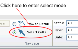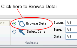 Navigate: Specify to browse detail information or to use Select Cells mode.